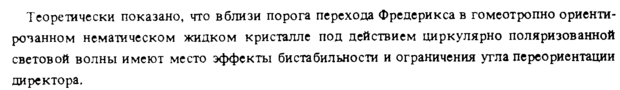 Теоретически показано, что вблизи порога перехода Фредерикса в гомеотропно ориентированном нематическом жидком кристалле под действием циркулярно поляризованной световой волны имеют место эффекты бистабильности и ограничения утла переориентации директора.