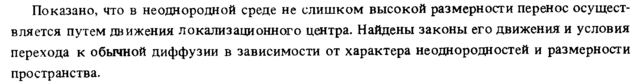 Показано, что в неоднородной среде не слишком высокой размерности перенос осуществляется путем движения локализационного центра. Найдены законы его движения и условия перехода к обычной диффузии в зависимости от характера неоднородностей и размерности пространства.