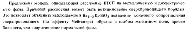 Предложена модель, описывающая расслоение ВТСП на металлическую и диэлектрическую фазы. Причиной расслоения может быть возникновение сверхпроводящего порядка. Это позволяет объяснить наблюдаемое в Β&^,.χ Κχ В Юз появление конечного сопротивления сверхпроводящего (по эффекту Мейсснера) образца в слабом магнитном поле, причем большего, чем сопротивление нормальной фазы.
