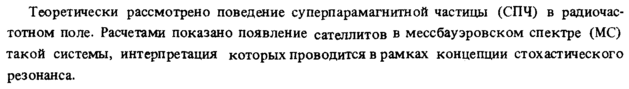 Теоретически рассмотрено поведение суперпарамагнитной частицы (СПЧ) в радиочастотном поле. Расчетами показано появление сателлитов в мессбауэровском спектре (МС) такой системы, интерпретация которых проводится в рамках концепции стохастического резонанса.