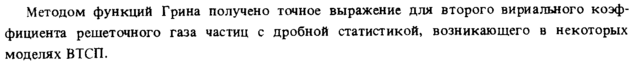 Методом функций Грина получено точное выражение для второго вириального коэффициента решеточного газа частиц с дробной статистикой, возникающего в некоторых моделях ВТСП.