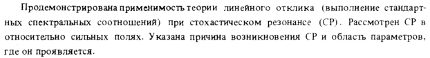 Продемонстрирована применимость теории линейного отклика (выполнение стандартных спектральных соотношений) при стохастическом резонансе (CP). Рассмотрен CP в относительно сильных полях. Указана причина возникновения CP и область параметров, где он проявляется.