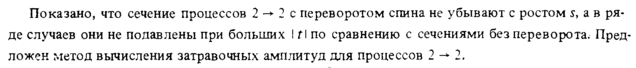 Показано, что сечение процессов 2 2 с переворотом спина не убывают с ростом s, а в ряде случаев они не подавлены при больших ! fl по сравнению с сечениями без переворота. Предложен метод вычисления затравочных амплитуд для процессов 2 2.