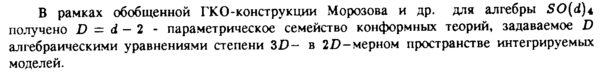 В рамках обобщенной ГКО-конструкции Морозова и др. для алгебры 50(d)4 получено D d 2 параметрическое семейство конформных теорий, задаваемое D алгебраическими уравнениями степени 3Dв 2£>-мерном пространстве интегрируемых моделей.