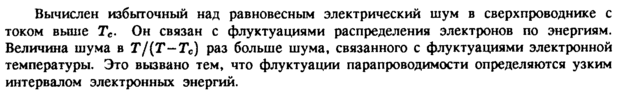 Вычислен избыточный над равновесным электрический шум в сверхпроводнике с током выше Те. Он связан с флуктуациями распределения электронов по энергиям. Величина шума в Т/(Г—Гс) раз больше шума, связанного с флуктуациями электронной температуры. Это вызвано тем, что флуктуации пара проводимости определяются узким интервалом электронных энергий.