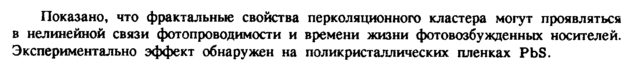 Показано, что фрактальные свойства переляционного кластера могут проявляться в нелинейной связи фотопроводимости и времени жизни фотовозбужденных носителей. Экспериментально эффект обнаружен на поликристаллических пленках PbS.