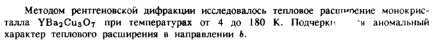 Методом рентгеновской дифракции исследовалось тепловое расширение монокристалла YBa2Cu307 при температурах от 4 до 180 К. Подчерки \ч аномальный характер теплового расширения в направлении 6.