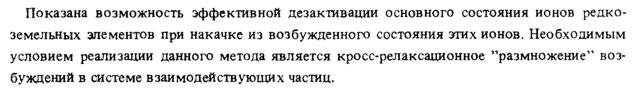 Показана возможность эффективной дезактивации основного состояния ионов редкоземельных элементов при накачке из возбужденного состояния этих ионов. Необходимым условием реализации данного метода является кросс-релаксационное "размножение" возбуждений в системе взаимодействующих частиц.