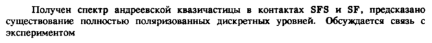 Получен спектр андреевской квазичастицы в контактах SFS и SF, предсказано существование полностью поляризованных дискретных уровней. Обсуждается связь с экспериментом
