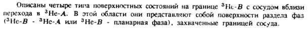 Описаны четыре типа поверхностных состояний на границе 3Не-£ с сосудом вблизи перехода в 3Не-А. В этой области они представляют собой поверхности раздела фаз <3Ие-£ 3Не-А или 3Не-£ планарная фаза), захваченные границей сосуда.