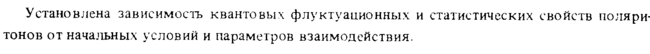 Установлена зависимость квантовых флуктуационных и статистических свойств поляри-тонов от начальных условий и параметров взаимодействия.