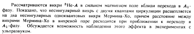 Рассматриваются вихри 3Не-А в сильном магнитном поле вблизи перехода в Λι-фазу. Показано, что несингулярный вихрь с двумя квантами циркуляции расщепляется на два несингулярных одноквантовых вихря Мермина-Хо, причем расстояние между вихрями Мермина-Хо в вихревой паре расходится при приближении к переходу в Л ι-фазу. Обсуждается возможность наблюдения этого эффекта в экспериментах с ультразвуком.