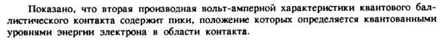 Показано, что вторая производная вольт-амперной характеристики квантового баллистического контакта содержит пики, положение которых определяется квантованными уровнями энергии электрона в области контакта.