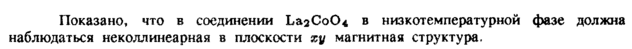 Показано, что в соединении ЬазСоО* в низкотемпературной фазе должна наблюдаться неколлинеарная в плоскости