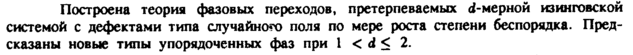 Построена теория фазовых переходов, претерпеваемых d-мерной изинговской системой с дефектами типа случайною поля по мере роста степени беспорядка. Предсказаны новые типы упорядоченных фаз при 1 < d < 2.