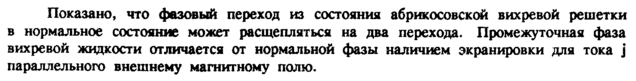 Показано, что фазовый переход из состояния абрикосовской вихревой решетки в нормальное состояние может расщепляться на два перехода. Промежуточная фаза вихревой жидкости отличается от нормальной фазы наличием экранировки для тока j параллельного внешнему магнитному полю.