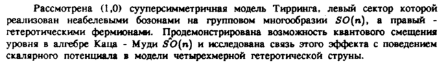 Рассмотрена (1,0) сууперсимметричная модель Тирринга, левый сектор которой реализован неабелеными бозонами на групповом многообразии SO(n)> а правый -гетеротическими фермионами. Продемонстрирована возможность квантового смещения уровня в алгебре Капа Μ уди SO(n) и исследована связь этого эффекта с поведением скалярного потенциала в модели четырехмерной гетеротической струны.