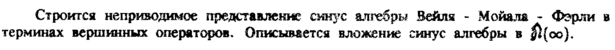 Представление вершинными операторами синус алгебры Вейля - Мойала - Фэрли