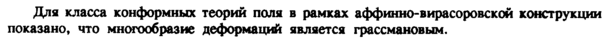 Для класса конформных теорий поля в рамках аффинно-вирасоровской конструкции показано» что многообразие деформаций является грассмановым.