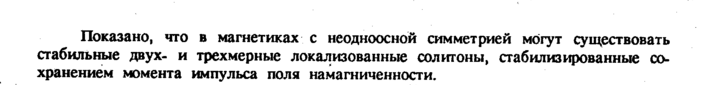 Показано, что в магнетиках с неодноосной симметрией могут существовать стабильные двухи трехмерные локализованные солитоны, стабилизированные сохранением момента импульса поля намагниченности.