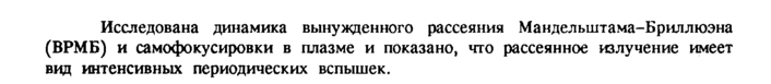 Исследована динамика вынужденного рассеяния Мандельштама-Бриллюэна (ВРМБ) и самофокусировки в плазме и показано, что рассеянное излучение имеет вид интенсивных периодических вспышек.