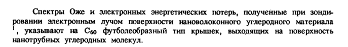 Спектры Оже и электронных энергетических потерь, полученные при зондировании электронным лучом поверхности нановолоконного углеродного материала 1, указывают на Сбо футболеобразный тип крышек, выходящих на поверхность нанотрубных углеродных молекул.