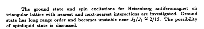 The ground state and spin excitations for Heisenberg antiferomagnet on triangular lattice with nearest and next-nearest interactions are investigated. Ground state has long range order and becomes unstable near Ji/J\ — 2/15. The possibility of spinliquid state is discussed.