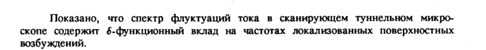 Показано* что спектр флуктуации тока в сканирующем туннельном микроскопе содержит £-функционный вклад на частотах локализованных поверхностных возбуждений.