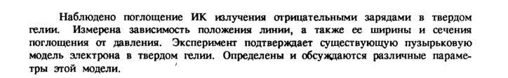Наблюдено поглощение ИК излучения отрицательными зарядами в твердом гелии. Измерена зависимость положения линии, а также ее ширины и сечения поглощения от давления. Эксперимент подтверждает существующую пузырьковую модель электрона в твердом гелии. Определены и обсуждаются различные параметры этой модели.