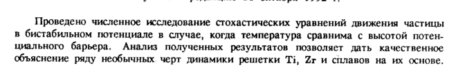 Проведено численное исследование стохастических уравнений движения частицы в бистабильном потенциале в случае, когда температура сравнима с высотой потенциального барьера. Анализ полученных результатов позволяет дать качественное объяснение ряду необычных черт динамики решетки Ti, Zr и сплавов на их основе.