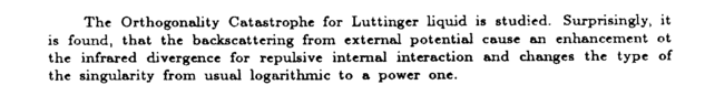 The Orthogonality Catastrophe for Luttinger liquid is studied. Surprisingly, it is found, that the backseattering from external potential cause an enhancement ot the infrared divergence for repulsive internal interaction and changes the type of the singularity from usual logarithmic to a power one.