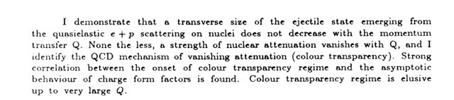 I demonstrate that a transverse size of the ejectile state emerging from the quasielastic e+p scattering on nuclei does not decrease with the momentum transfer Q. None the less, a strength of nuclear attenuation vanishes with Q, and I identify the QCD mechanism of vanishing attenuation (colour transparency). Strong correlation between the onset of colour transparency regime and the asymptotic behaviour of charge form factors is found. Colour transparency regime is elusive up to very large Q.