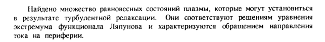 Найдено множество равновесных состояний плазмы, которые могут установиться в результате турбулентной релаксации. Они соответствуют решениям уравнения экстремума функционала Ляпунова и характеризуются обращением направления тока на периферии.