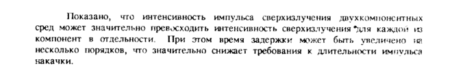 Показано, что интенсивность импульса сверхизлучения двух компонентных сред может значительно превосходить интенсивность сверх излучения *для каждой из компонент в отдельности. При этом время задержки может быть увеличено на несколько порядков, что значительно снижает требования к длительности импульса накачки.