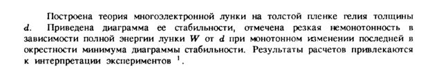 Построена теория многоэлектронной лунки на толстой пленке гелия толщины d. Приведена диаграмма ее стабильности, отмечена резкая немонотонность в зависимости полной энергии лунки W от d при монотонном изменении последней в окрестности минимума диаграммы стабильности. Результаты расчетов привлекаются к интерпретации экспериментов 1.