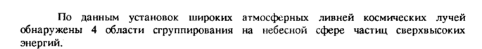 По данным установок широких атмосферных ливней космических лучей обнаружены 4 области сгруппирования на небесной сфере частиц сверхвысоких энергий.