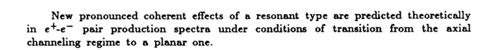 New pronounced coherent effects of a resonant type are predicted theoretically in e+-e~ pair production spectra under conditions of transition from the axial channeling regime to a planar one.