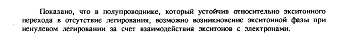 Показано, что в полупроводнике, который устойчив относительно экситонного перехода в отсутствие легирования, возможно возникновение экситонной фазы при ненулевом легировании за счет взаимодействия экситонов с электронами.