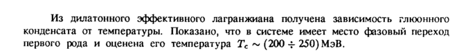Из дилатонного эффективного лагранжиана получена зависимость глюонного конденсата от температуры. Показано, что в системе имеет место фазовый переход первого рода и оценена его температура Тс ~ (200 -f 250) МэВ.