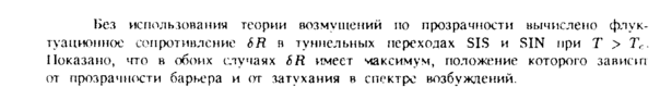 Без использования теории возмущений но прозрачности вычислено флук-туациопное сопротивление 6R в туннельных переходах SIS и SIN при Τ > Тс. Показано, что в обоих случаях SR имеет максимум, положение которого зависит от прозрачности барьера и от затухания в спектре возбуждений.