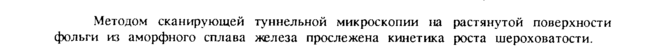 Методом сканирующей туннельной микроскопии на растянутой поверхности фольги из аморфного сплава железа прослежена кинетика роста шероховатости.