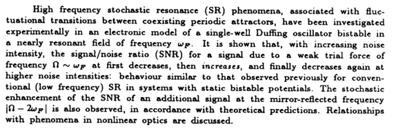 Dykman M.I, Luchinsky D.G, Mannella R., McClintock P.V.E, Stein N.D., Stocks N.G.