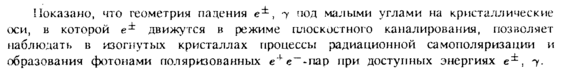Показано, что геометрия падения е1, у под малыми углами на кристаллические оси, в которой движутся в режиме плоскостного каналирования, позволяет наблюдать в изогнутых кристаллах процессы радиационной самополяризации и образования фотонами поляризованных е4е--пар при доступных энергиях е±, -у.