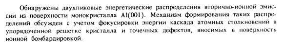 Двухпиковые энергетические распределения вторичных ионов, распыляемых из поверхности монокристалла алюминия