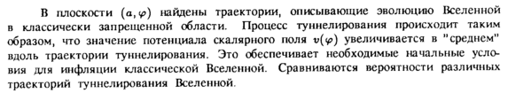 В плоскости (α,ν?) найдены траектории, описывающие эволюцию Вселенной в классически запрещенной области. Процесс туннелирования происходит таким образом, что значение потенциала скалярного поля ν(φ) увеличивается в "среднем" вдоль траектории туннелирования. Это обеспечивает необходимые начальные условия для инфляции классической Вселенной. Сравниваются вероятности различных траекторий туннелирования Вселенной.