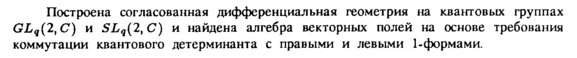 Построена согласованная дифференциальная геометрия на квантовых группах GLq(2,C) и SLq(2tC) и найдена алгебра векторных полей на основе требования коммутации квантового детерминанта с правыми и левыми 1-формами.