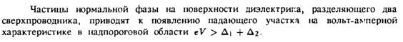 Частицы нормальной фазы на поверхности диэлектрика, разделяющего два сверхпроводника, приводят к появлению падающего участка на вольт-амперной характеристике в надпороговой области eV > Δι + Аг-