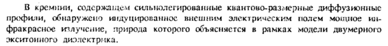 В кремнии, содержащем сильнолегированные квантово-раз мерные диффузионные профили, обнаружено индуцированное внешним электрическим полем мощное инфракрасное излучение, природа которого объясняется в рамках модели двумерного экситонного диэлектрика.