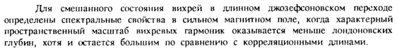 Для смешанного состояния вихрей в длинном джозефсоновском переходе определены спектральные свойства в сильном магнитном поле, когда характерный пространственный масштаб вихревых гармоник оказывается меньше лондоновских глубин, хотя и остается большим по сравнению с корреляционными длинами.