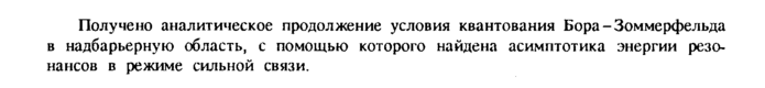 Получено аналитическое продолжение условия квантования Бора-Зоммерфельда в надбарьерную область, с помощью которого найдена асимптотика энергии резо-нансов в режиме сильной связи.